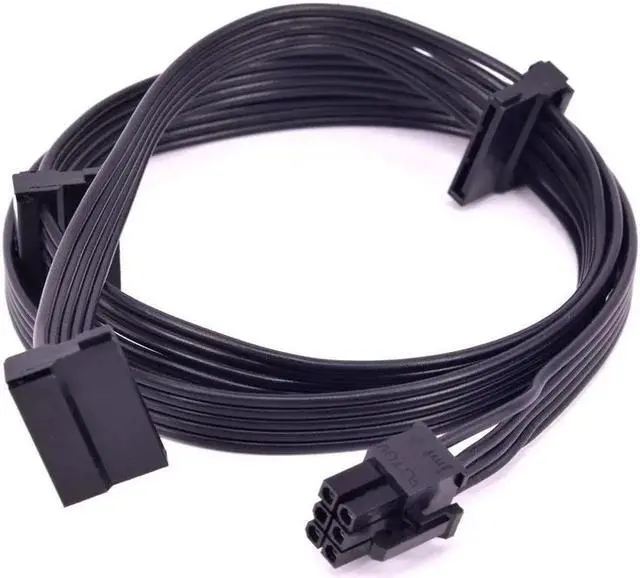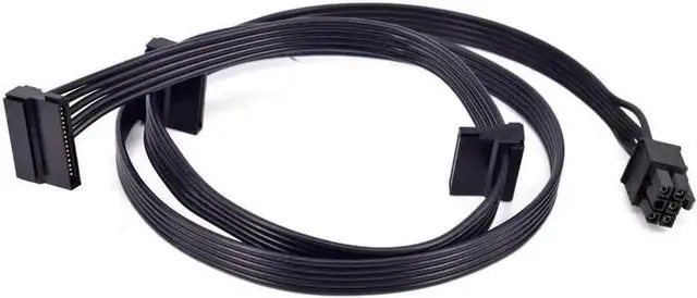 This PCIe 6Pin to 3-way SATA power cable is specially designed for Corsair AX series modular power supplies. It turns one 6-pin PSU port into three 15-pin right-angle SATA power ports, allowing you to power more storage devices such as hard drives and solid-state drives. The right-angle connector makes installation more convenient in narrow spaces and reduces pressure on cables and interfaces. Made of 18AWG high-quality copper wire, it ensures stable and safe power transmission for long-term use. The proper cable length supports neat wiring in most computer cases, ideal for PC upgrades and storage expansion.