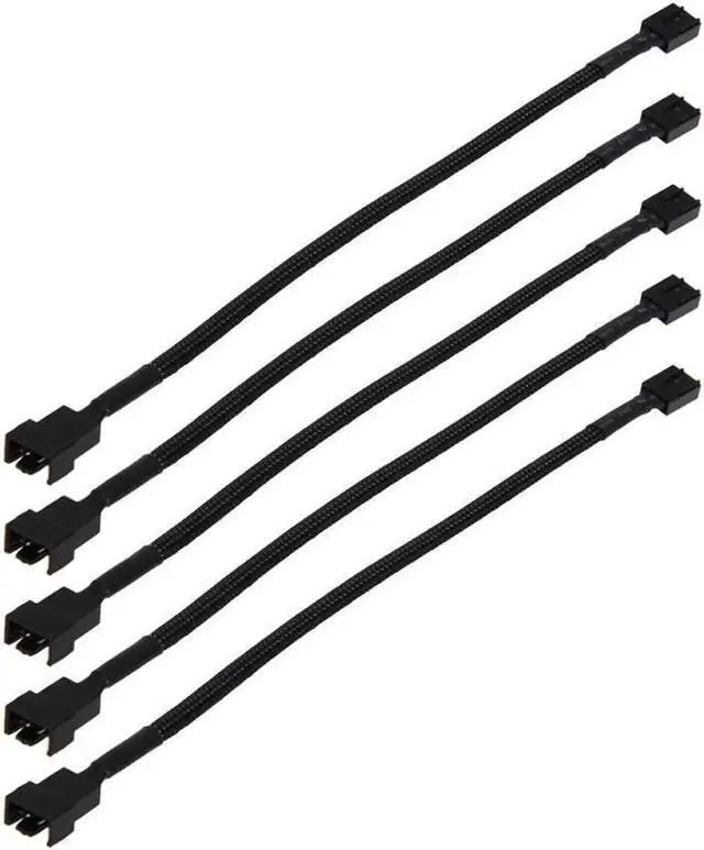 This 5-pack fan power extension cable uses braided sleeving for durability and clean looks. At 25cm long, it fits well in small and mid-tower cases. The 4-pin Molex connector works with 2-pin, 3-pin and 4-pin PWM fans, drawing stable power directly from the power supply. Its plug-and-play, no drivers needed, perfect for adding extra fans or replacing old cables in gaming PCs and workstations.