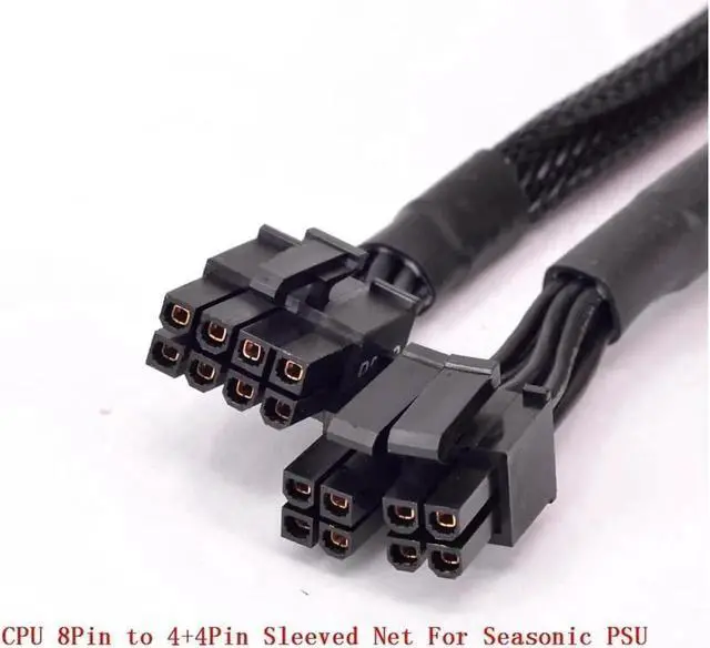 This CPU power cable is specially designed for Seasonic modular power supplies. It features a sturdy braided mesh jacket and converts the PSUs 8-pin CPU modular output to a 4+4-pin ATX 12V/EPS connector, fitting almost all desktop motherboard CPU power inputs. High-quality copper wiring ensures stable power for overclocked CPUs under heavy load. Ideal for PC building, upgrades, and replacing original cables.