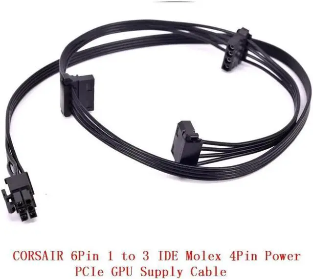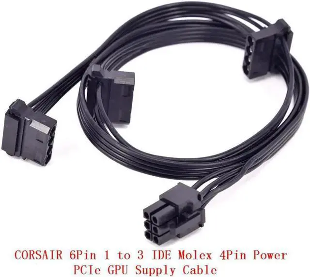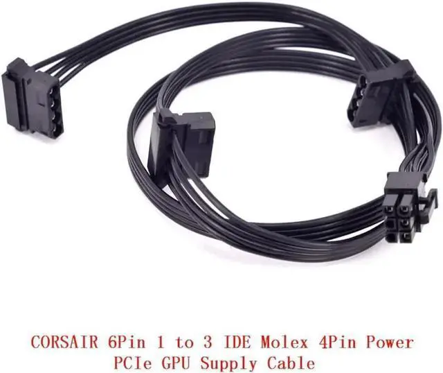 This PCI-e 6Pin to 3 Molex 4Pin splitter cable is custom-made for Corsair modular power supplies. It is widely suitable for CS, CX, HX, RM series models including CS450M, CS550M, CX750M, HX1050, RM450 and more.