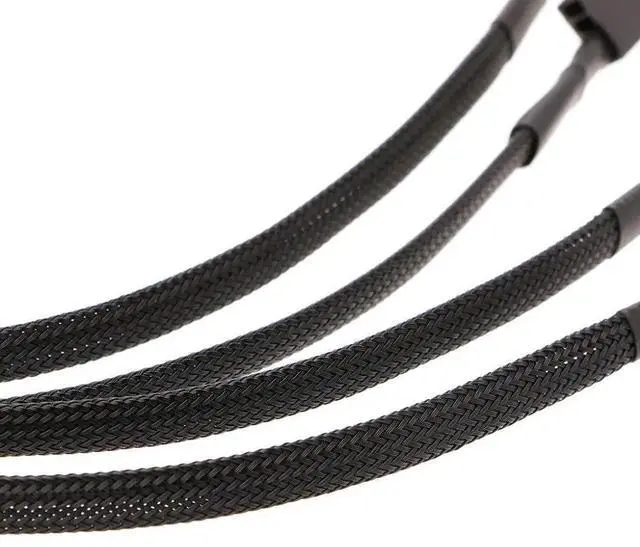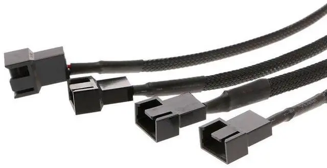 This premium 1 to 4 way PWM fan Y-splitter cable features a sleeved outer layer for enhanced durability and heat resistance. It converts one 4-Pin Molex male port into four 3-Pin/4-Pin PWM male connectors, allowing you to expand multiple case fans with a single power connection.