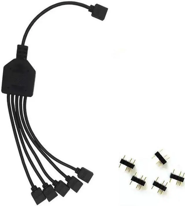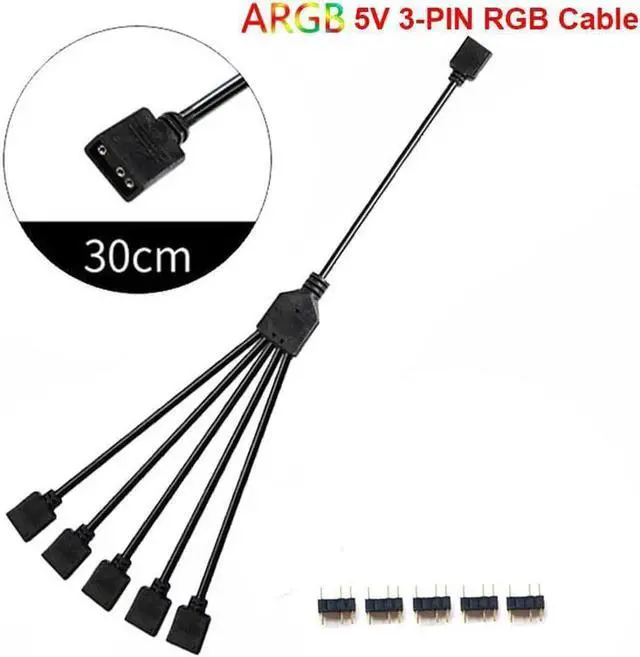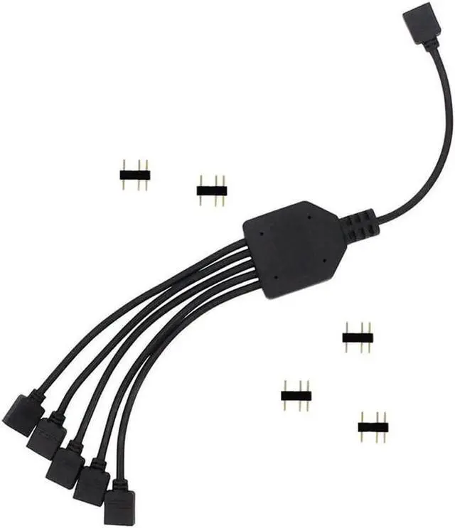 This 1-to-5 3-pin addressable RGB splitter cable comes with 2 pieces per set, offering convenient multi-light expansion for your PC. It connects one 5V 3Pin ARGB header to up to 5 addressable RGB devices, including case RGB fans, LED light strips and other 3Pin ARGB accessories.
