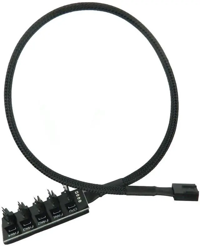 This 5-way PWM fan splitter supports 3-Pin and 4-Pin cooling fans, expanding one motherboard fan header to five ports. It realizes unified fan speed regulation and stable power output, effectively enhancing chassis heat dissipation. Made of high-quality wire and durable connectors, it features anti-interference and long service life. Lightweight and flexible, it helps organize internal cables and reduce clutter. Perfect for desktop PC building, case modification and multi-fan layout installation.