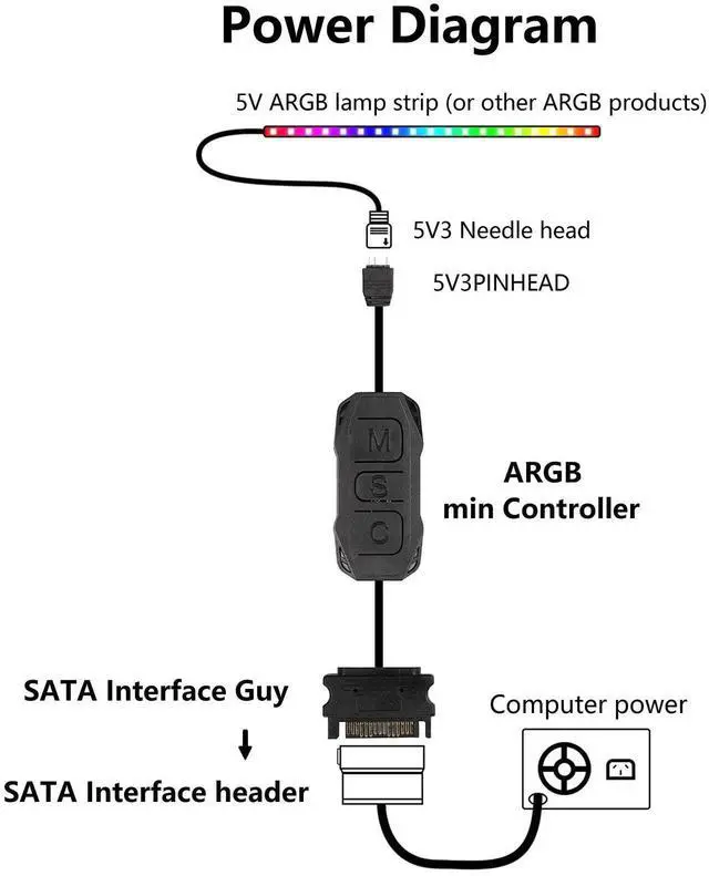This 5V 3-pin ARGB controller is specially designed for addressable RGB light strips. Powered by standard SATA interface, it offers steady power supply for long-term lighting use. With simple manual mode adjustment, you can freely switch various dynamic lighting effects, colors and speed to customize your PC case lighting style. Small and lightweight, it will not take up extra chassis space and helps keep internal wiring neat. Widely applicable for desktop PC modification, case atmosphere lighting decoration and DIY ARGB lighting projects.