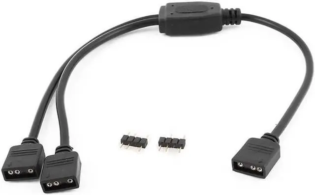 This 3-pin 5V RGB splitter cable is designed for motherboard AURA sync lighting systems. It splits one single RGB header into two independent ports to power and synchronize multiple RBW LED strips and lighting accessories. The female-to-female gender changer design offers higher installation flexibility for PC building. Made with durable insulation and secure connectors, it ensures stable signal transmission for smooth color changing and lighting effects. Compact 1-foot length simplifies internal cable management, perfect for gaming PC, chassis decoration and custom RGB lighting setup.