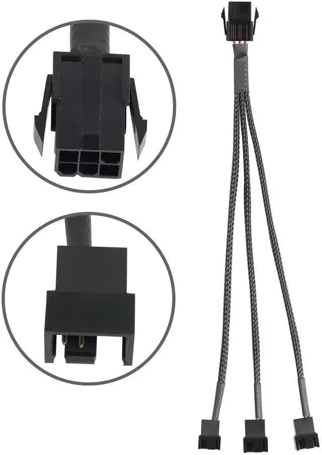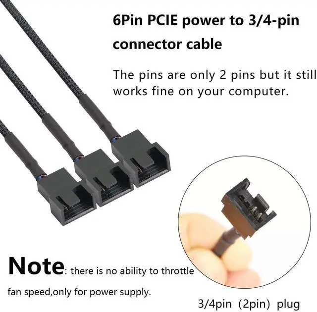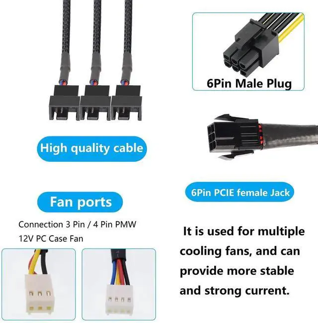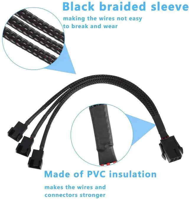 This sleeved PCI-E 6Pin to 3-port fan splitter cable expands a single 6Pin PCIe power port to support multiple 3Pin and 4Pin cooling fans. It offers a convenient fan power solution for cases with limited motherboard fan headers. High-quality braided sleeve resists abrasion and high temperature, extending service life. Precise molded connectors ensure secure, loose-free connection for long-term stable operation. Lightweight and flexible for easy cable routing, ideal for gaming PCs, custom builds and system cooling upgrades.