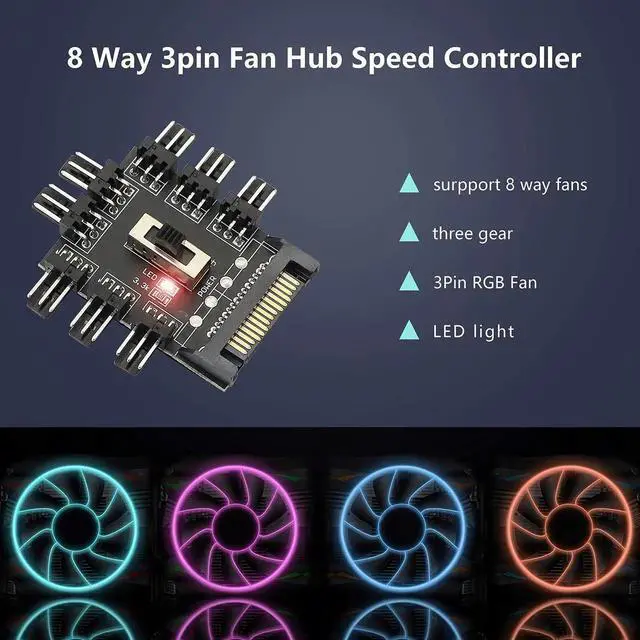 This 3 Pin fan hub splitter adopts 1-to-8 expansion design, allowing you to connect multiple chassis cooling fans at the same time. Powered by SATA interface, it provides stable 12V power supply and reduces current pressure on the motherboard. Compatible with 3-pin and PWM fans, it keeps smooth heat dissipation and balanced airflow inside the computer case. Compact size brings flexible installation, convenient for internal cable arrangement. Durable circuit board and safe material ensure long-term stable use, an ideal cooling expansion accessory for desktop PC building and renovation.