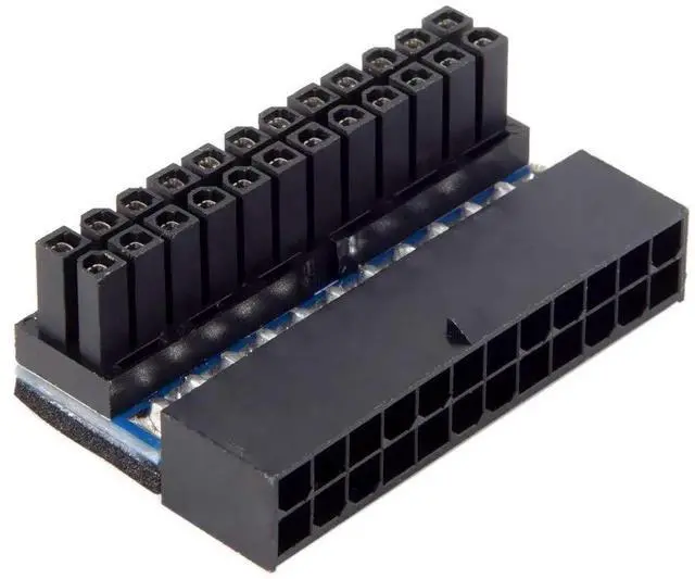 This 90° ATX 24Pin power adapter connects the original 24Pin power cable to the motherboard at a right angle. It effectively solves wiring congestion and hard cable bending issues in compact or small chassis. Fully compatible with standard ATX 24Pin motherboards and desktop power supplies. Built with high-quality insulated housing and reinforced pins to maintain stable power transmission. Simple plug-and-play installation, an essential accessory for PC assembly, renovation and optimized internal cable management.