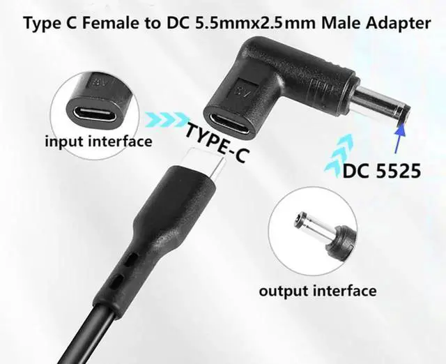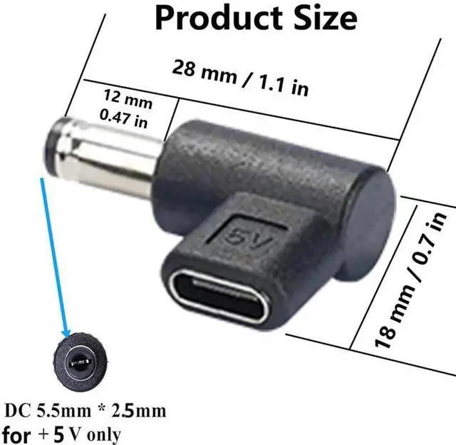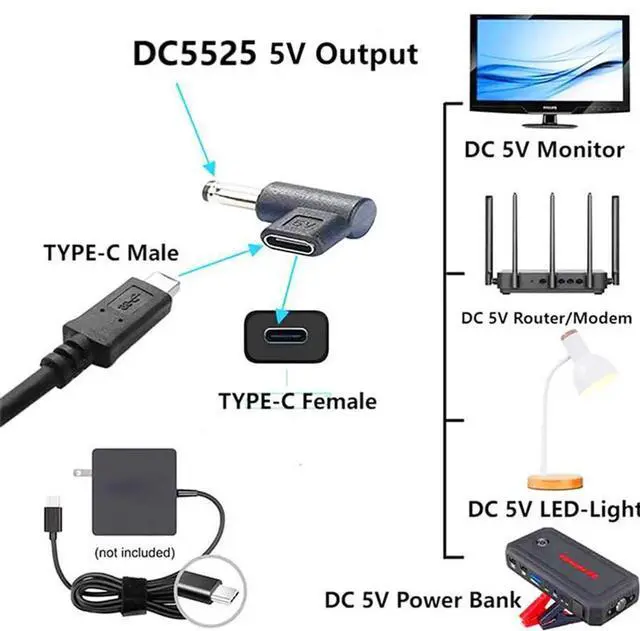 This 90-degree angled DC 5525 to Type-C adapter converts a standard 5.5mm x 2.5mm DC male power plug into a USB-C female port. It provides steady 5V power supply for small electronic devices, solving interface matching issues perfectly. The compact right-angle design reduces cable bending stress and improves internal and desktop wiring neatness. Made with high-quality conductive contacts and wear-resistant housing for safe, long-lasting power transmission. Lightweight, plug-and-play and easy to carry, it is a practical power conversion accessory for home, office and outdoor use.