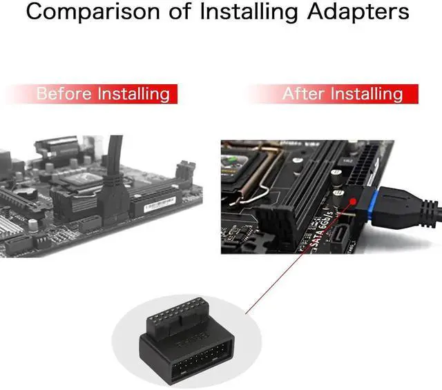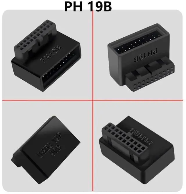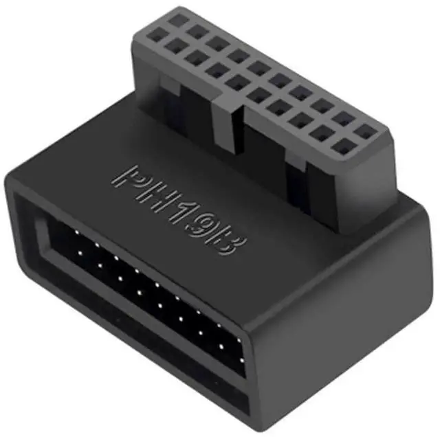 This right-angle USB 3.0 19/20Pin motherboard adapter features a down-facing 90-degree L-shaped design, perfectly optimizing tight chassis layouts and avoiding cable extrusion and bending damage. It extends the onboard USB 3.0 header with precise pin alignment for stable data and power transmission. Made with premium insulated housing and reinforced contacts, it ensures secure connection and daily durability. Lightweight and easy to install, it is an ideal internal wiring accessory for PC assembly, case modification and hardware space optimization.