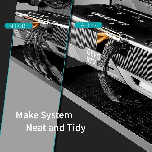 Pre-installed cable combs help organize messy wires, improve chassis air circulation and overall beauty. Plug and play, easy to install without extra tools. Widely suitable for mainstream brand GPUs and modular PSUs, ideal for PC DIY, replacement and upgrade.