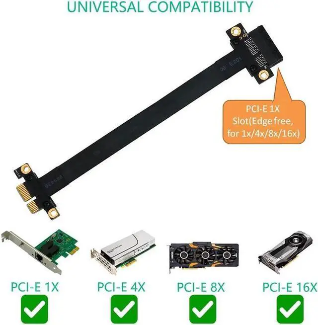 This PCIe x1 extension cable adopts 36Pin standard design with premium gold-plated contacts to ensure lossless signal transmission, anti-corrosion and anti-oxidation. 180-degree straight connector and 20cm reasonable length perfectly solve the installation space limitation of internal expansion cards. The soft and bendable wire is convenient for routing and installation, avoiding hardware extrusion and stress damage. It is compatible with all PCI-e x1 interface devices such as network cards, sound cards, capture cards and adapter cards. Lightweight, durable and easy to install, it is a practical accessory for PC assembly, hardware upgrade and chassis modification.