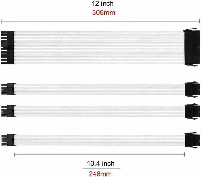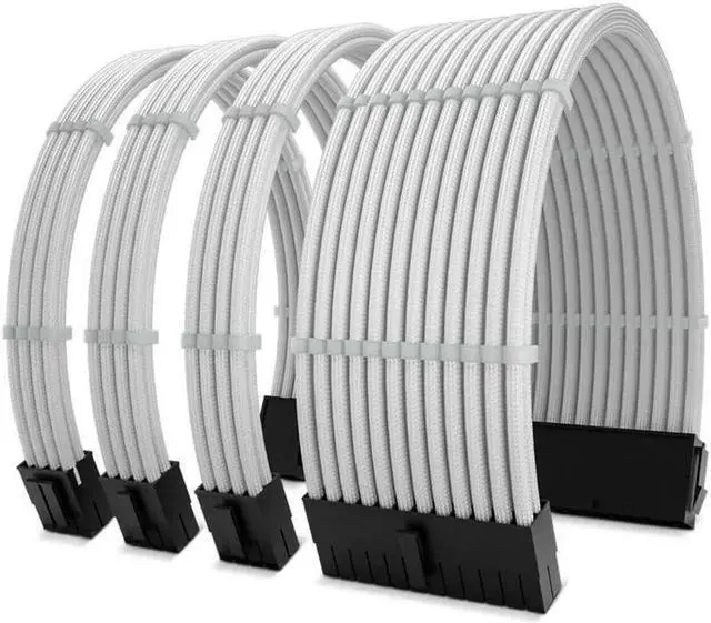 This white customized sleeved extension cable kit is specially crafted for PC mod enthusiasts and gaming desktop upgrades. Featured premium full white braided sleeved outer layer, it effectively upgrades the internal visual style of your chassis with neat and unified wiring. High-quality pure copper wire core ensures stable current transmission, reduces heat generation and guarantees safe high-load operation. Flexible and bendable construction allows easy installation and tidy cable arrangement, improving chassis airflow and heat dissipation. Universal for mainstream GPUs, motherboards and modular power supplies, perfect for new PC building, cable replacement and personalized white theme computer modification.