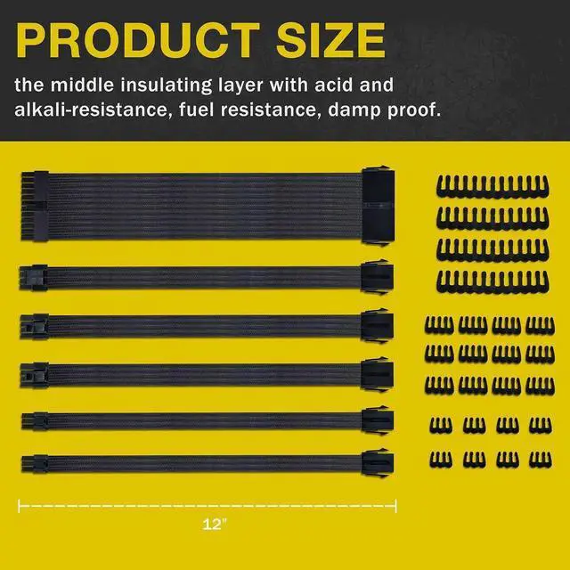 Clovertale ATX sleeved cable extension kit includes full essential power cords and matching cable combs to meet daily PC wiring needs. Braided outer shielding effectively protects cables from wear, aging and dust. Integrated with reliable conductive core, it ensures steady current transmission during long gaming and high-load working. The matched cable combs help arrange internal lines neatly for better heat dissipation and clean visual effect. Simple plug-and-play design, perfectly suitable for case modification, hardware upgrade and daily power supply wiring arrangement.