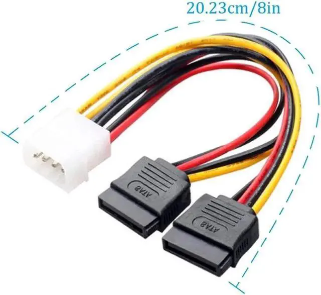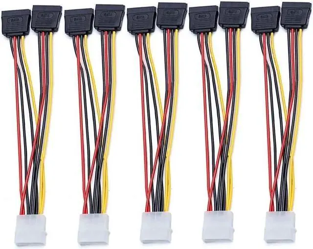 This 4 Pin Molex to 2×15 Pin SATA power Y-cable easily converts traditional Molex IDE power port into dual SATA power ports. It provides stable and reliable power output for hard drives, solid state drives and other SATA devices. Made of high-quality flame-retardant and wear-resistant materials, it ensures long-term safe operation inside the computer case. 8-inch moderate length helps organize internal cables, improve air circulation and reduce clutter. The 5-piece bulk set is cost-effective, perfect for desktop computer assembly, hardware upgrading, industrial equipment and daily maintenance replacement.
