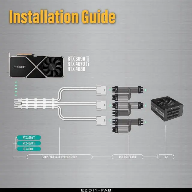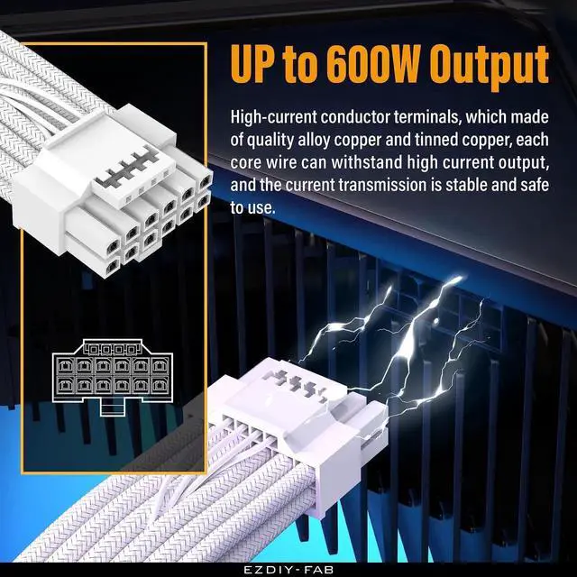 This pure white PCIe 5.0 12VHPWR conversion cable connects 16Pin 12+4 pin GPU port to three standard 8Pin PCIe power connectors. Built with 16AWG highconductivity wire core, it supports continuous highload operation with stable voltage output. Durable full sleeved braided construction resists high temperature, abrasion and bending damage. Premounted cable combs effectively arrange cables to optimize chassis airflow and enhance overall visual uniformity. Plug and play for quick installation, perfectly suited for white theme PC modding, gaming rig assembly and highwattage GPU power upgrade.