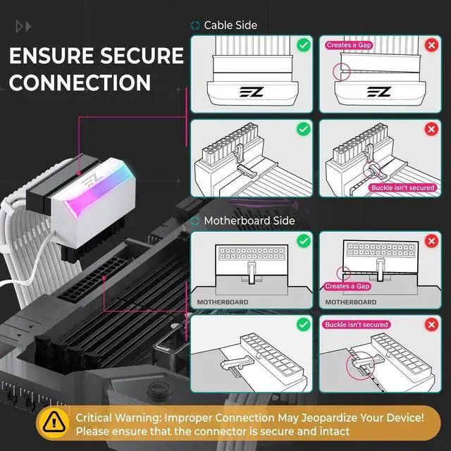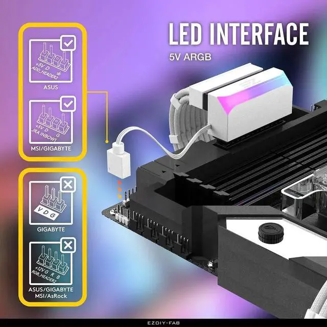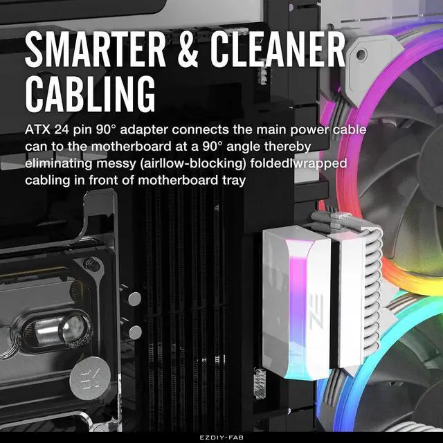 This ATX 24-pin 90-degree power adapter integrates 5V 3Pin ARGB rainbow lighting to add dynamic ambient lighting to your PC. The right-angle structure relieves cable bending stress, tidies internal wiring and enhances airflow. Female to male connector ensures stable power transmission for motherboard ATX power supply. Made of premium sturdy material with fine workmanship, it offers long-term durability and stable performance. Suitable for daily PC assembly, case modification and aesthetic lighting customization.