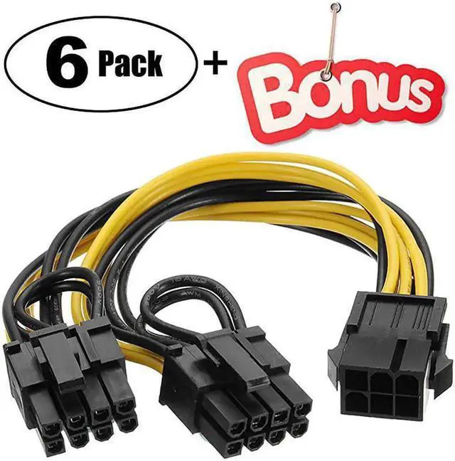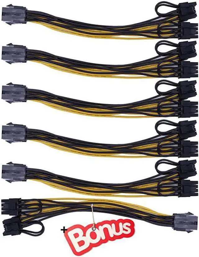 This PCIe 6 Pin to Dual 8 Pin (6+2) Y-splitter extension cable is designed to expand graphics card power connections efficiently. The integrated braided sleeved outer layer enhances durability, abrasion resistance and thermal isolation for long-duration high-load operation. Flexible 9-inch length streamlines cable management and reduces clutter inside chassis or mining rigs. The reversible 6+2 modular terminals ensure a secure, snug fit on all mainstream VGA and graphics card power interfaces. Lightweight, plug-and-play and built for stable current transmission, this 6-pack with bonus is a practical solution for GPU upgrades, custom PC modding and cryptocurrency mining rig assembly.