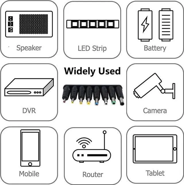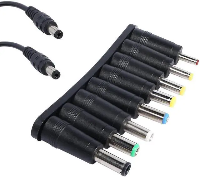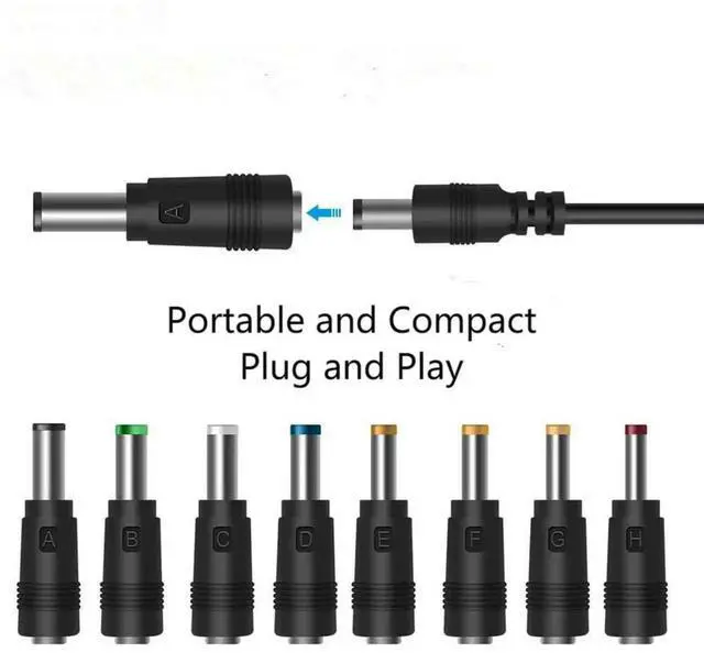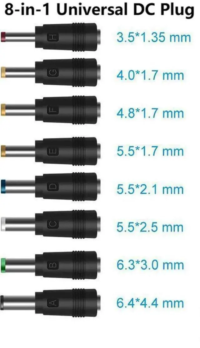 This universal 8-in-1 DC power adapter kit includes multiple replaceable male DC plugs and a 5.5mm x 2.1mm female connector, perfectly compatible with most small electronics, laptops and daily DC power devices. Equipped with a 22cm black tuning fork cable, it offers flexible wiring and convenient installation. Each connector is precisely made for tight connection, stable power output and effective prevention of loose contact and power interruption. Portable and space-saving, this multi-functional DC plug set is an ideal replacement and backup accessory for home, office and travel use.