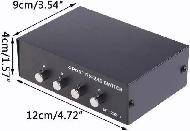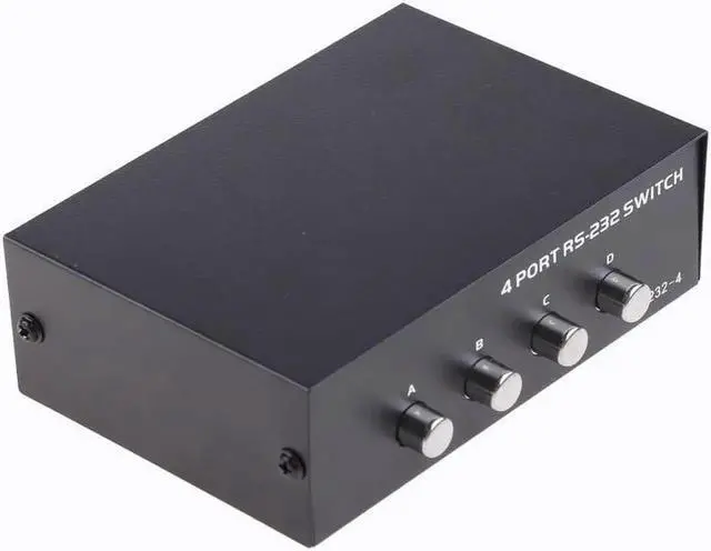 This 4-port RS-232 manual switch features a durable metal case for excellent shielding and stability. It enables multiple computers to share a single serial peripheral, effectively reducing device costs and saving desktop space. With easy manual switching operation, you can quickly switch between different signal channels. Adopting standard DB9 RS-232 connection, it is fully compatible with computers, printers and various serial communication devices. No extra power supply or software installation is needed for quick setup and use. Compact and rugged, it delivers reliable serial data transmission for long-term office, factory and commercial working environments.