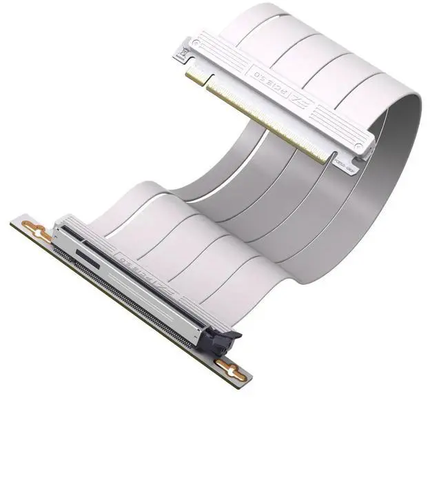 This 30cm white right-angle PCIe 5.0 X16 riser cable features 128GB/s ultra-high bandwidth to meet the demands of flagship GPUs. The right-angle connector saves chassis space and enables seamless vertical GPU installation. Backward compatible with PCIe 4.0 and 3.0, it works with most existing motherboards and graphics cards. High-density shielding reduces signal interference, ensuring stable and lag-free performance during gaming and heavy loads. Clean white appearance upgrades your system aesthetics while keeping internal wiring organized for better airflow.