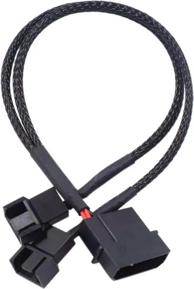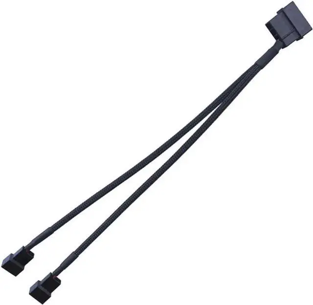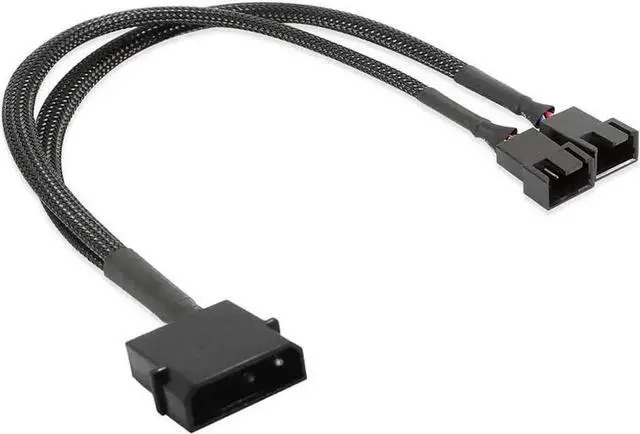 12V Molex to 2x 3pin / 4pin Fan Splitter Cable with Black Sleeved Jacket