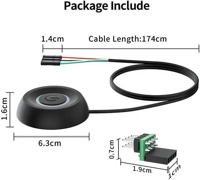External Desktop PC Power Switch: It is recommended for home users, computer rooms, bare board machines, water-cooled chassis DIY, etc. If the case is placed in a hard-to-reach place, use this switch to lead to a place where it is convenient to operate.
