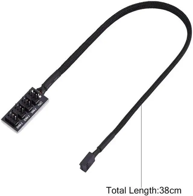 • Package Contents: 1 black 14.96 inch 1 to 4 splitter fan power supply extension cables, male to female connector plug.