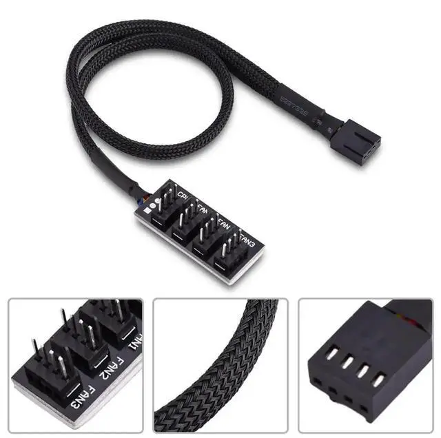 • Excellent sleeved 1 to 4 way 4pin PWM splitter fan power supply extension cable hub for computer fans. Capable of expanding one motherboard PWM fan header to support up to 3 fans, make you easier DIY PC computer case.
