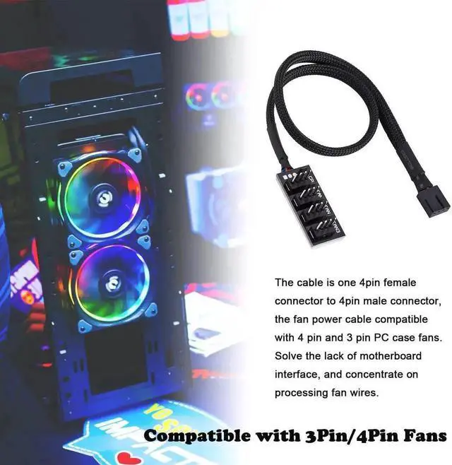 • Compatible with 3Pin/4Pin Fans: The cable is one 4pin female connector to 4pin male connector, the fan power cable compatible with 4 pin and 3 pin PC case fans. Solve the lack of motherboard interface, and concentrate on processing fan wires.