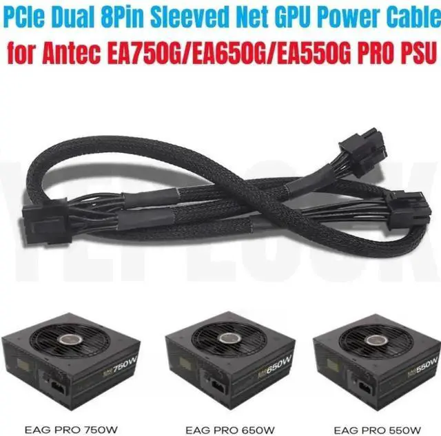 PCIe Dual 8Pin 6+2Pin GPU Power Cable forAntec EAG 750W, 650W, 550W PRO Earthwatts Gold Semi Modular Power, Sleeved Net 60+20CM