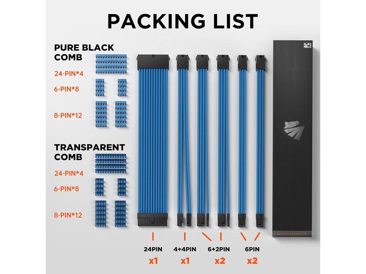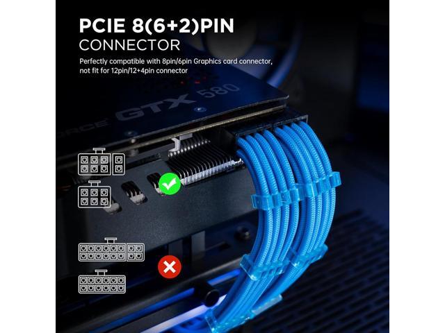 - Pc Cable Extension Kit1x24 Pin ATX Extension Cable (for Motherboard), 1x (4+4) Pin EPS Cable (for CPU), 2 x 6+2-Pin PCI-e Cable and 2 x 6-Pin PCI-e Cable (for GPU), supplied two sets of cable combs, compatible with all power supply cables (must be connected to the power cable, not to the power supply)