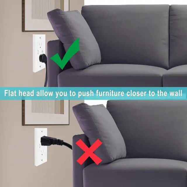 Efficient Use of SpaceWith the flat profile of the wall plug, it makes the cord less obvious and allows you to place something in front of it, almost flush with the wall. Save a lot of space, move furniture closer to the wall.