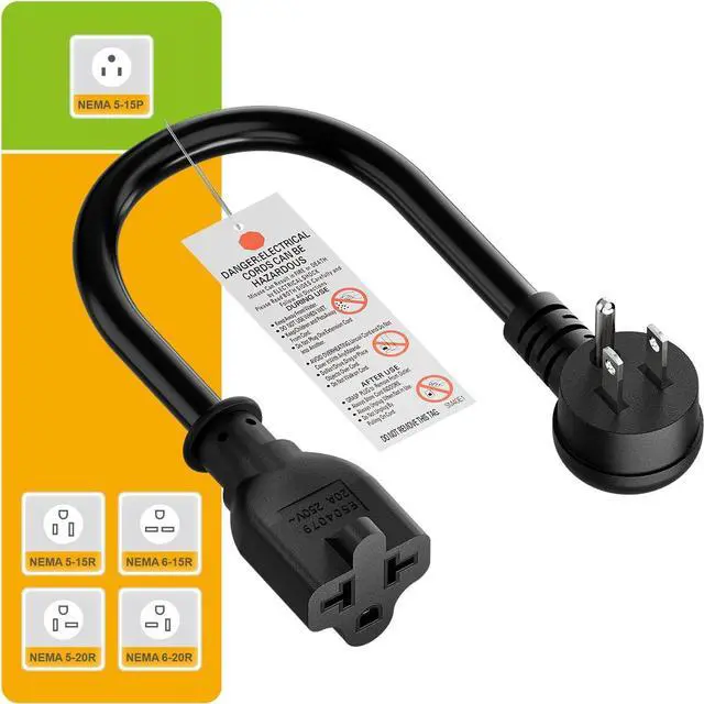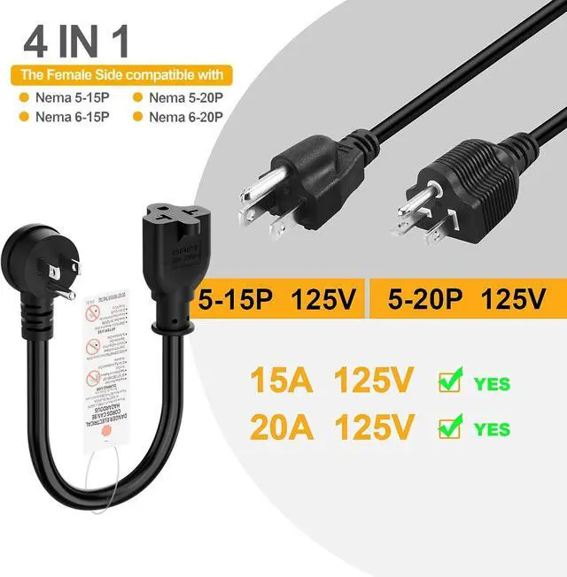 Compatible 2: Nema 5-15P 15-AMP Male (125V) to Nema 5-20R 20-AMP Male (125V) Female ac adapter