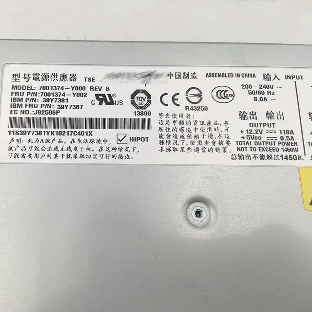 • For IMB 8886 Power Supply 7001374-Y000 7001374-Y002 39Y7381 39Y7367 1450W