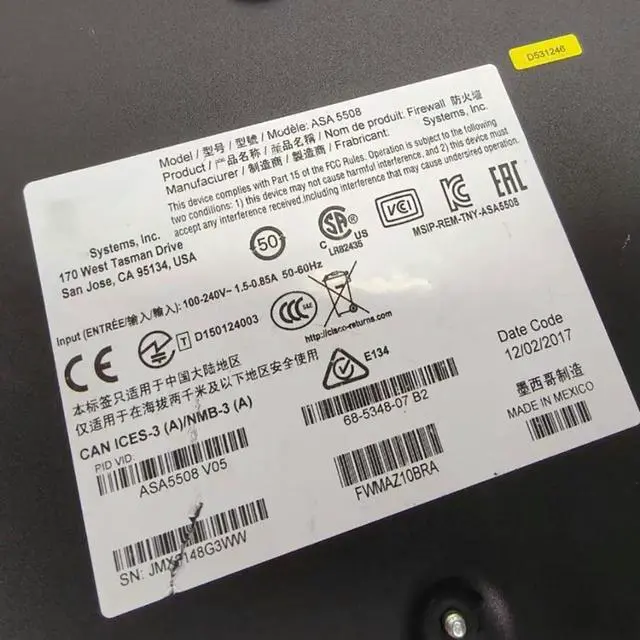 • Full Gigabit Enterprise Firewall ASA 5508-X