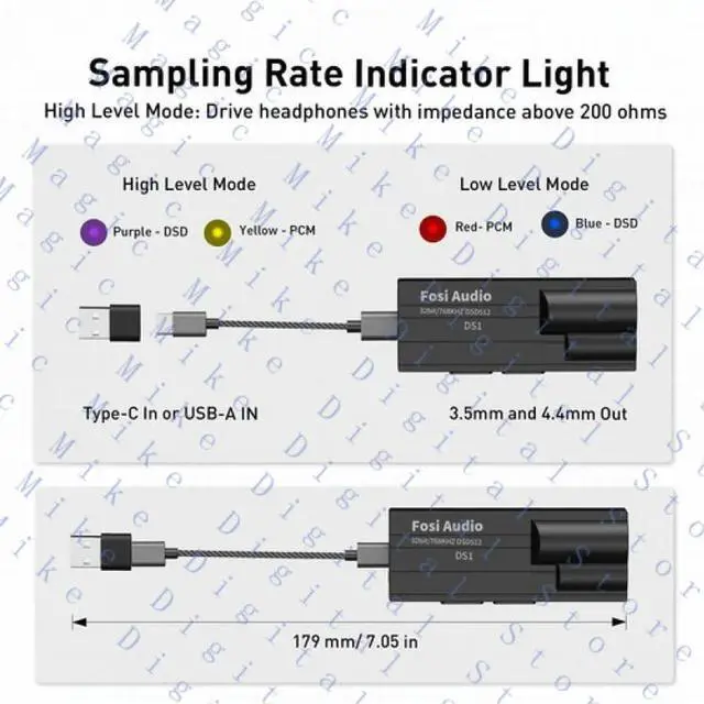 • for Fosi Audio DS1 DSD512 HiFi DAC Headphone Amplifier Mini Audio USB Amp 3.5/4.4MM