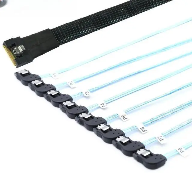 • FOR Slimline4.0 SFF-8654 8i to 8 SATA Adapter Cable Full Enclosure Angled Con tor and Right-Angled SATA HDD Converter Included