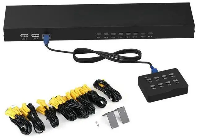 • FOR 8 Port Smart KVM Switch Manual Key Press VGA USB Wired Remote Extension Switcher 1U Console with Cable 801UK-L