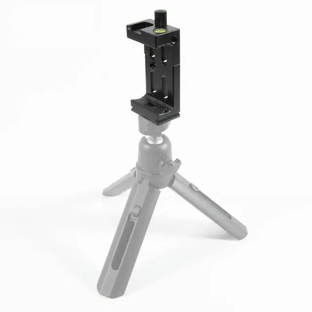 • FOR Aluminum Tripod Head Bracket Mobile Phone Holder Clip With Spirit level and Cold Shoe Mount For Phone Flashlight Microphone