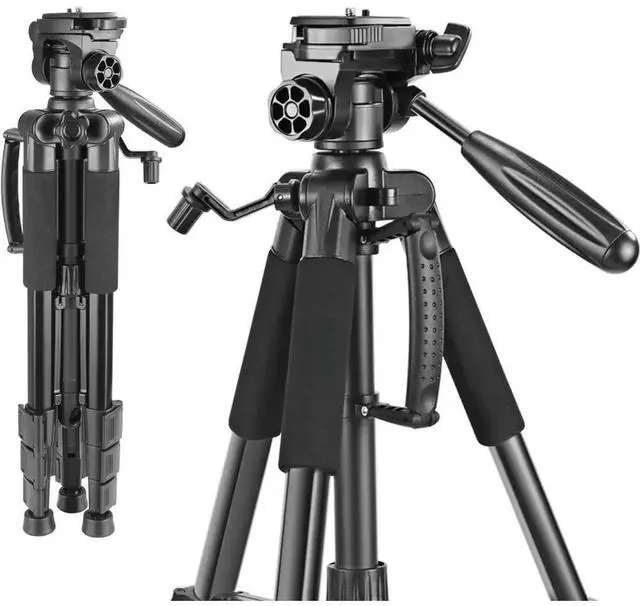 • FOR Portable Aluminum Camera Tripod with 3-Way Swivel Pan Head,DV Video Camcorder Load up to 4 kilograms Black