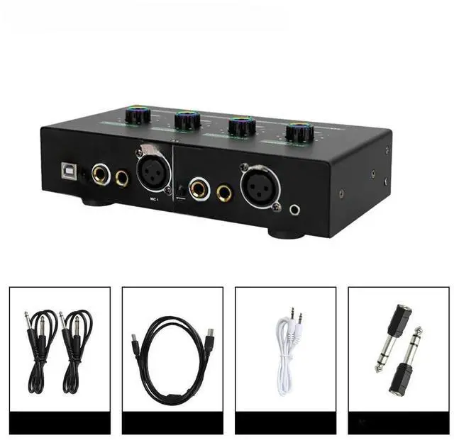 • FOR Guitar Instrument Microphone Amplifier Moving Coil Capacitor Microphone Sound Card 48V Phantom Dual Power Supply