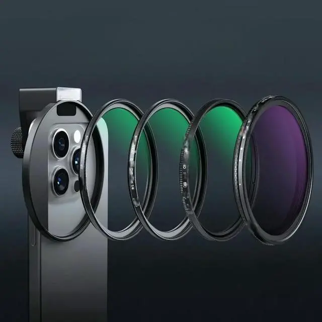 • FOR 67mm Clip On Variable ND2-ND32 Phone Lens Filter Kit, Phone Clip with Threaded Adapter Ring/Cold Shoe/Locking Knob