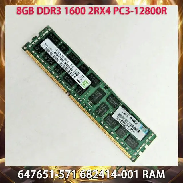 • 8GB DDR3 1600 2RX4 PC3-12800R 8G 647651-571 682414-001 PC Server Memory