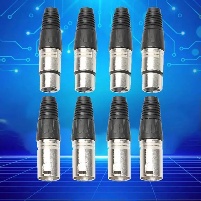 • 8pcs Audio Microphone Connector 4 Male 4 Female 3Pin MIC Jack Plug Zinc Alloy Socket Panel Mount Chassis for Mixer Amplifier