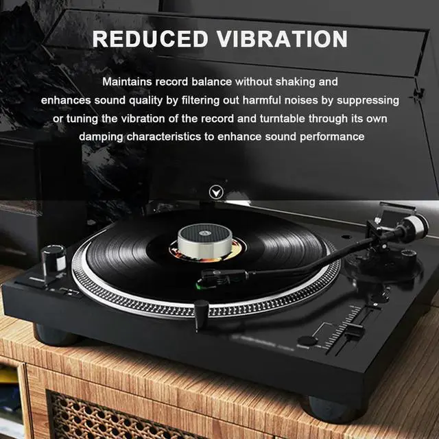 • LP Vinyl Record Player Disc Turntable Stabilizer Weight Clamp 304 Stainless Steel/Carbon Fiber for Vibration Balanced