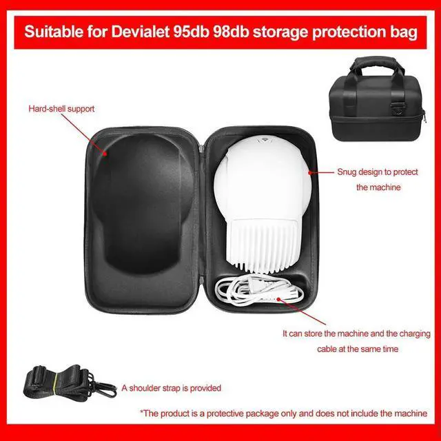 • Hard Carrying Case Shockproof Portable Storage Bag EVA Double Zipper Handbag with Shoulder Strap for Devialet Phantom II 95/98dB