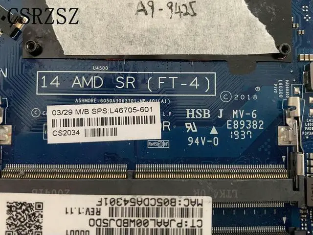 L46705-001 6050A3063701 Mainboard For 14S-DP 14-DK Laptop motherboard A9-9425u CPU Test 100% ok work