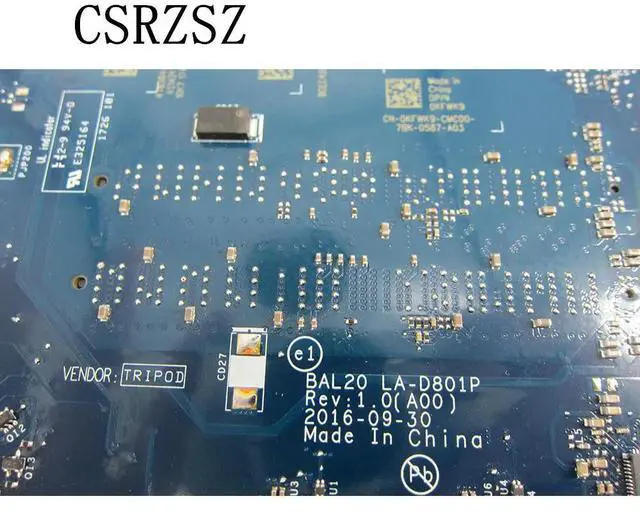 • For inspiron 5567 5767 Laptop motherboard with i7-7500u CPU LA-D801P DDR4 Tested work