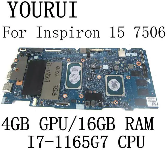 • For Inspiron 15 7506 Laptop Motherboard with I7-1165G7 CPU and 4GB GPU 16GB RAM CN-0G72HV 0G72HV 19828-1 Mainboard